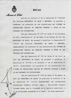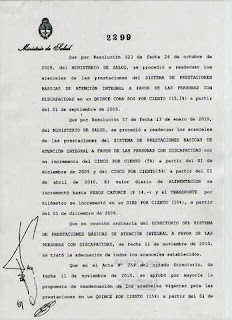 Según la resolución 2299 del Ministerio de Salud con fecha 28/12/2010 correspondiente al Sistema de Prestaciones Básicas a favor de las personas con Discapacidad el nuevo arancel para las prestaciones de Apoyo será: $80,56- SON 9 HOJAS DE LA RESOLUCIÓN N°2299-2010
